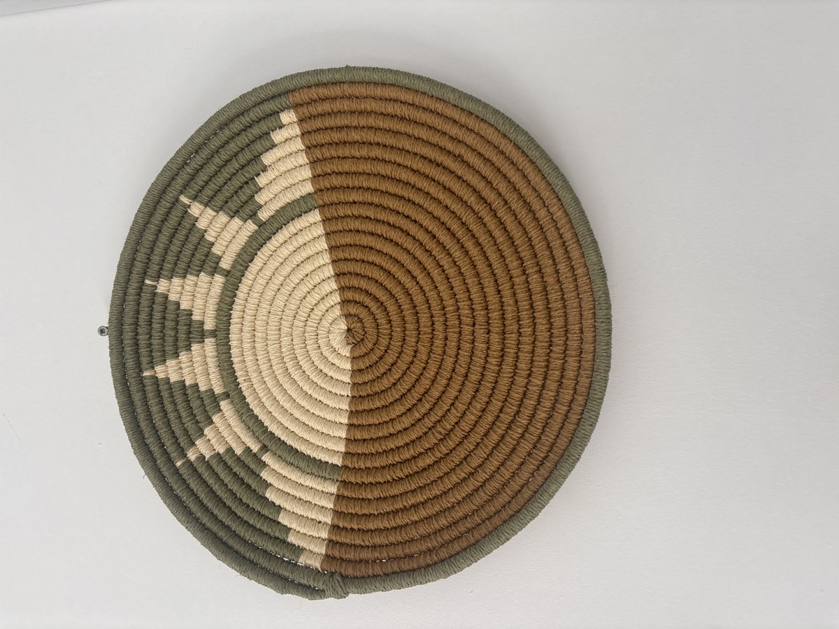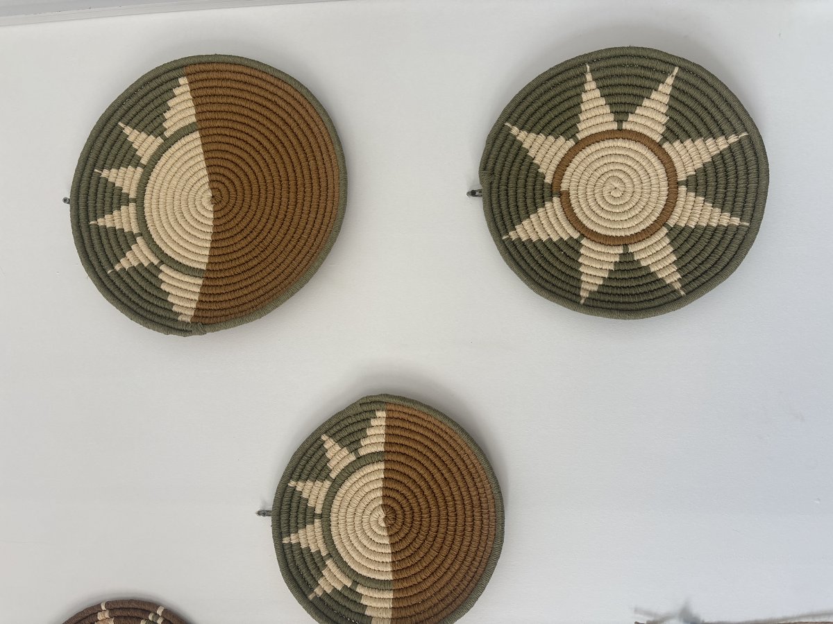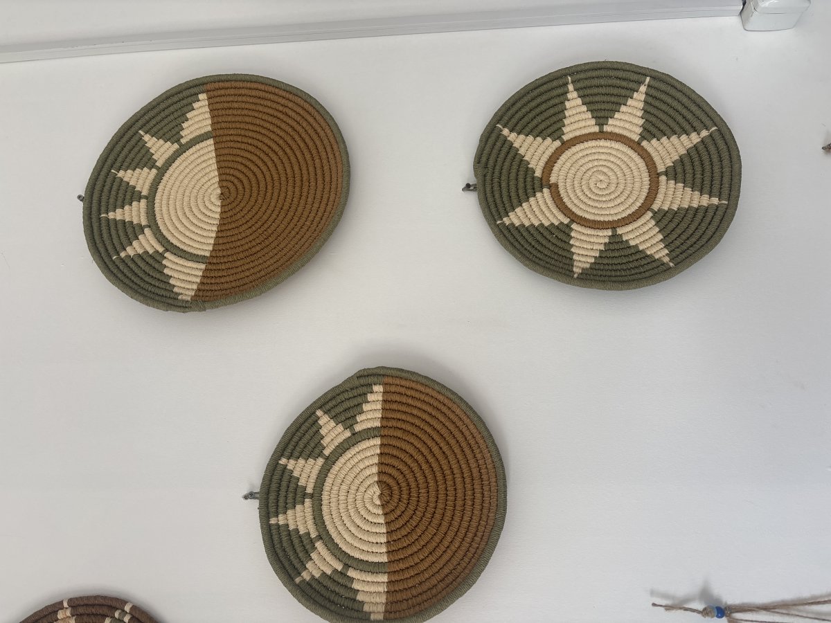 Kâğıt ip kullanılarak tamamen el emeğiyle hazırlanan bu üçlü duvar dekor seti, doğal tonların huzur veren uyumunu yaşam alanlarınıza taşıyor. Toprak, krem ve yeşil renklerin dengeli geçişleri; güneş ve doğa esintili desenlerle birleşerek duvarlarınıza sıcak, samimi bir atmosfer kazandırır.